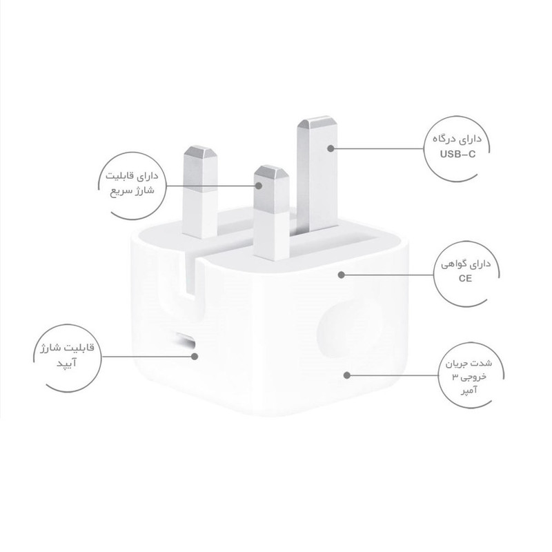 وان خروجی در این مدل از شارژرهای دیواری با پورت USB-C 20 وات است. همچنین جریان خروجی در آن 3.0 آمپر شدت دارد و برای شارژ باتری انواع گوشیهای موبایل، دوربین دیجیتال و دیگر لوازم از این قبیل مناسب خواهد بود. در این شارژر دیواری یک سه شاخه برق قرار گرفته که از آن برای اتصال شارژر به پریز برق استفاده میشود. البته توجه داشته باشید که این سه شاخه با پریز برق در ایران سازگاری ندارد و شما برای استفاده از آن باید از یک تبدیل 3 به 2 استفاده کنید. پس از استفاده از این تبدیل، شما میتوانید شارژر را بهطور مستقیم به پریز برق متصل کرده و دستگاه مورد نظر خود را با کمک یک کابل USB به آن متصل کنید. ولتاژ ورودی در این شارژر 220 تا 240 ولت و ولتاژ خروجی در آن 20 ولت است. وزن این شارژر 80 گرم بوده و ابعاد آن بهصورتی طراحی شده که بهسادگی قابل حمل باشد.