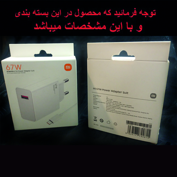 این محصول آداپتور شارژر گوشی شیائومی مدل 67w میباشد که از کیفیت بسیار بالایی برخوردار است . این محصول در بسته بندی اورجینال میباشد و در داخل جعبه یک کابل اصلی مخصوص خود شارژر هم گذاشته شده .